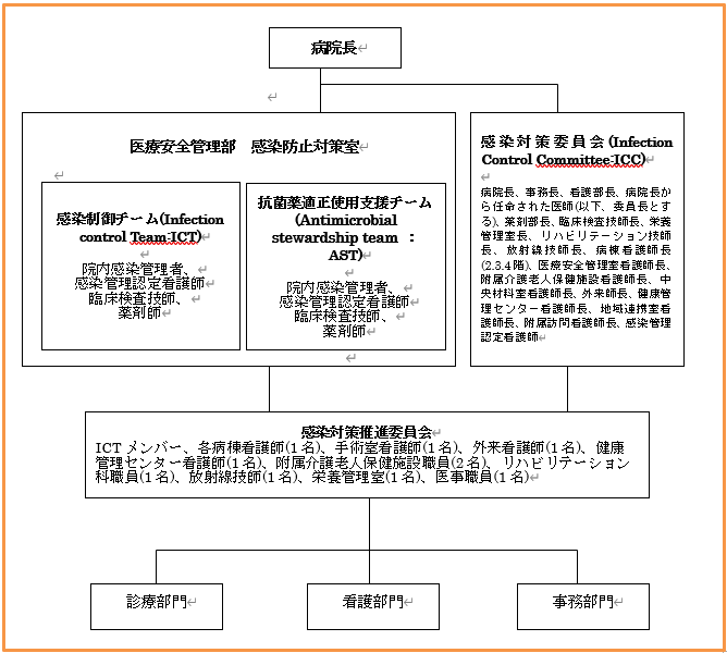 ICTは、当病院に於ける感染管理の実践的活動機関として、病院長の直轄機関として設置する。
